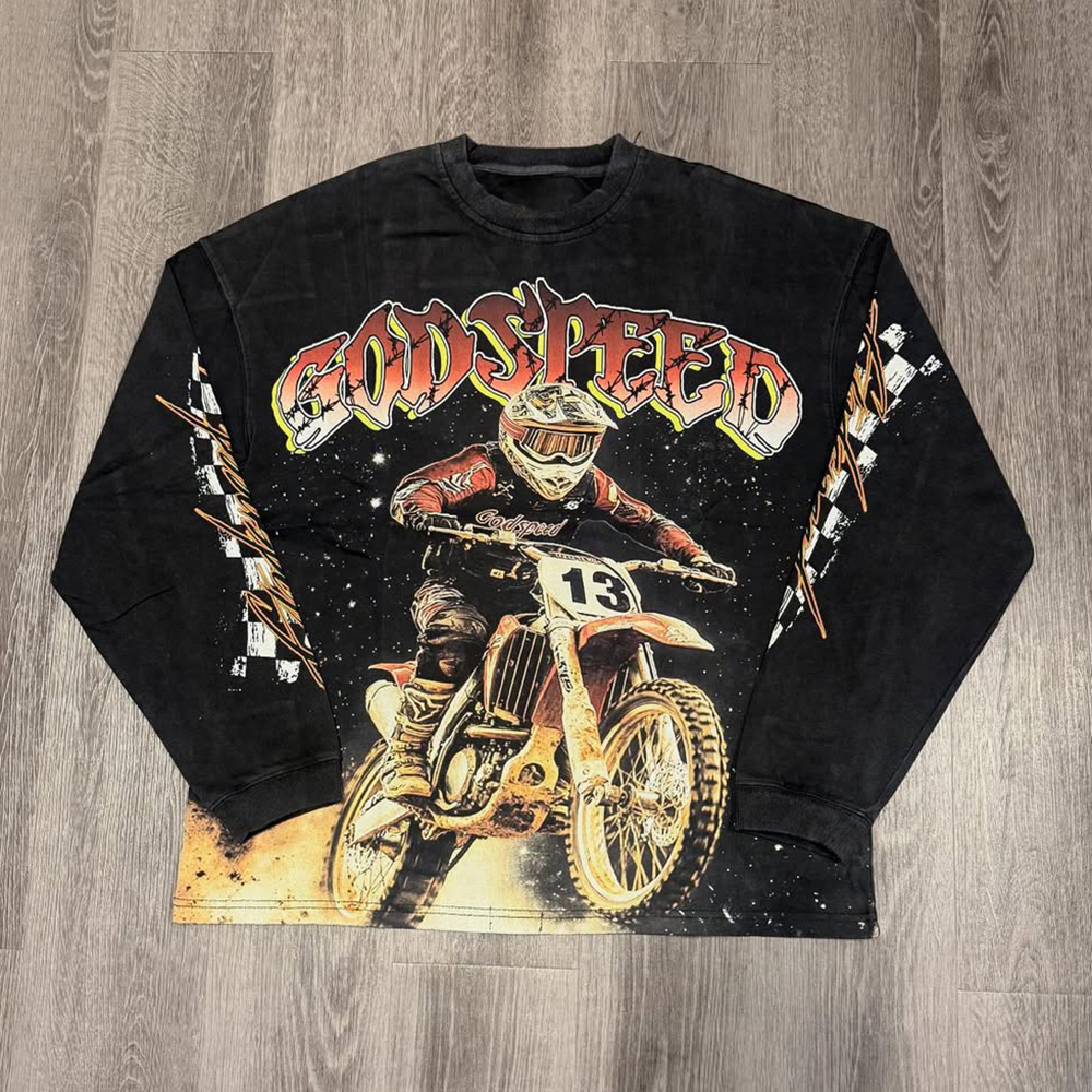 Motorcycle Print Long Sleeve Sweatshirt